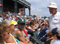 Instead of a summer monthly program break, we had a chapter outing to the Somerset Patriots baseball game at the PNCBank Arena in Bridgewater, New Jersey on July 31, 2005. It was a hot, but not sultry, afternoon with moments of cloudy breeze. The Atlantic City Surfs beat the home team 6-2 as the group of 65 chapter members and guests watched and enjoyed the entertainment. We cheered for recognition of our group and for one lucky group member who was randomly selected to throw the first pitch. Our hope is to continue the relationship with this local organization and learn more about their project management challenges and accomplishments. Next year, we'll try for an evening game with fireworks! Enjoy your summer and get ready for a great 2005-6 season of professional development and networking programs.
